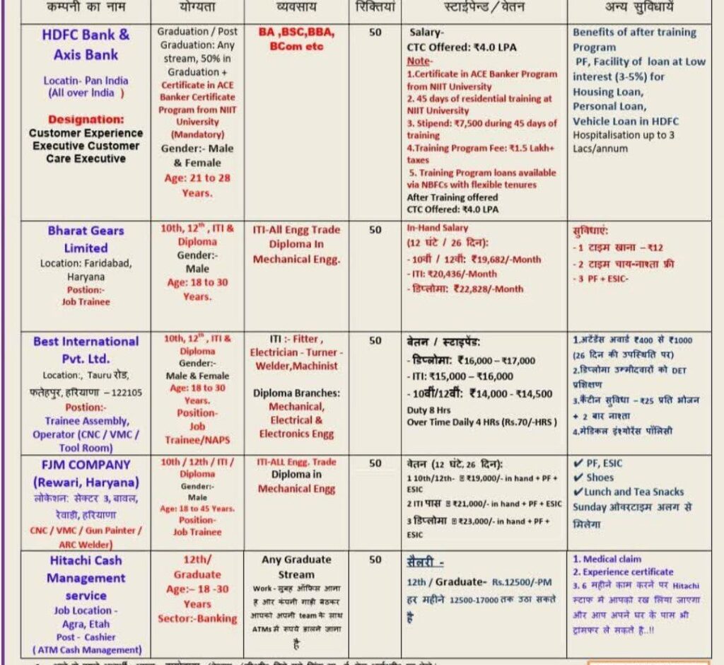 10th/ 12th/ITI/ Diploma/ Graduate Passout in All Technical Trades Passout Students Eligible.