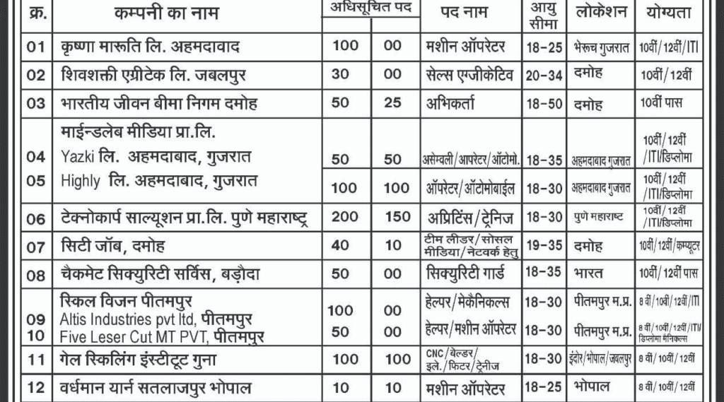 Yuva Rojgar Sangam -रोजगार, स्वरोजगार एवं अप्रेंटिस मेले में कुल 12 कंपनियां विभिन्न पदों के लिए चयन करेंगे ।